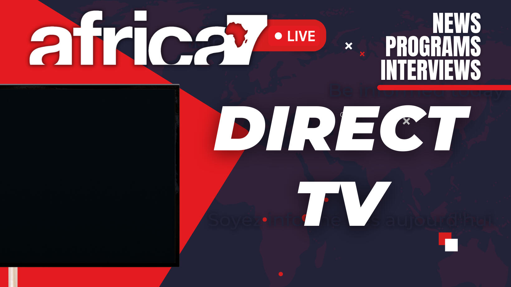"Africa7 est une chaine de télévision généraliste sénégalaise qui mise sur l’éducation la culture et le sport. Elle cible une population francophone et anglophone, jeunes et femmes de toute l’Afrique et de sa diaspora"